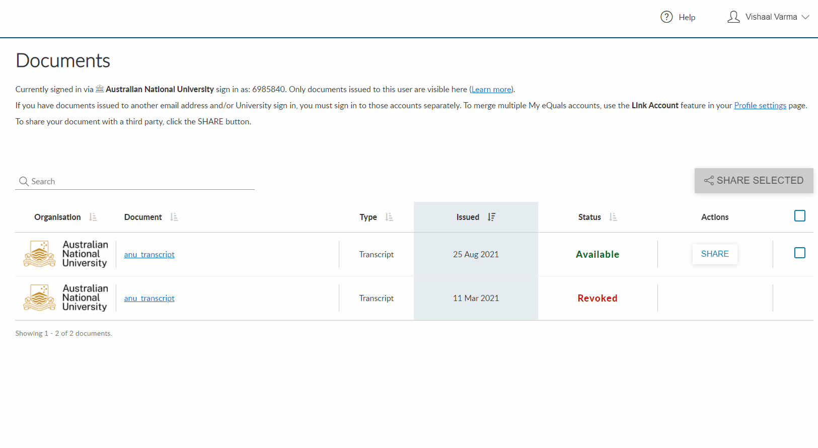 How to share academic transcript via My eQuals: